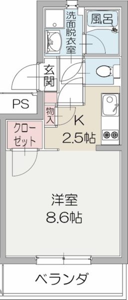 | 間取内容 | 洋室8.6畳 K2.5畳 | ||
