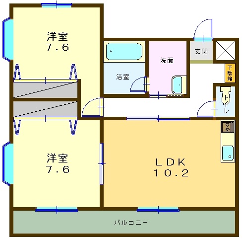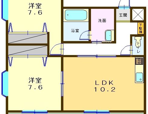 | 間取内容 | 洋室7.6畳 洋室7.6畳 LDK10.2畳 | ||