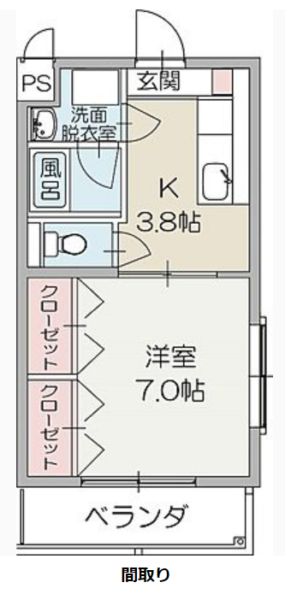 | 間取内容 | 洋室7畳 K3.8畳 | ||