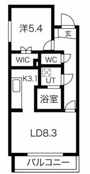 | 間取内容 | 洋室5.4畳 LD8.3畳 K3.1畳 | ||