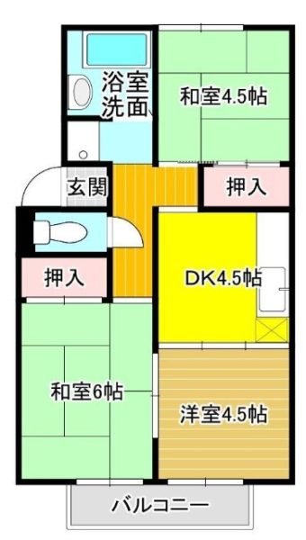 | 間取内容 | 和室4.5畳 DK 和室6畳 和室4.5畳 | ||
