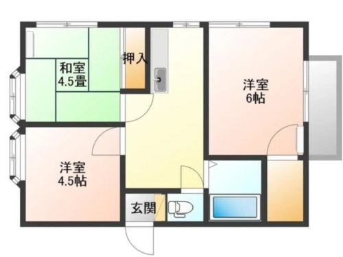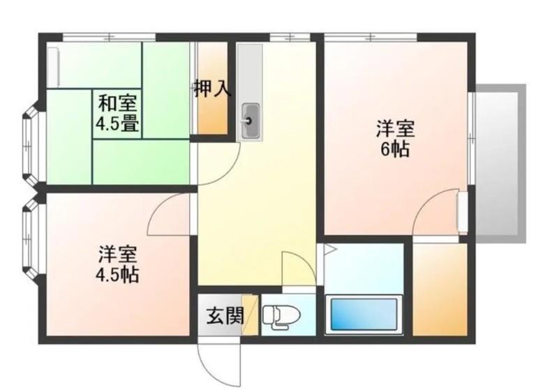 | 間取内容 | DK4.5畳 和室6畳 和室4.5畳 洋室4.5畳 | ||